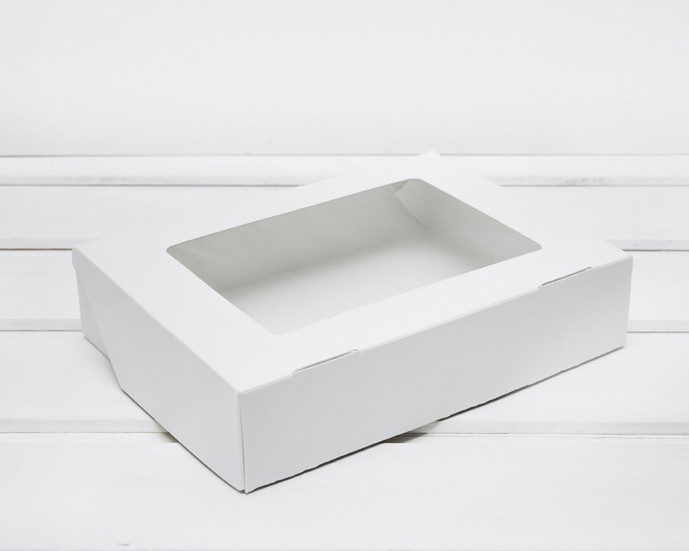 Коробка для выпечки и пирожных, 20х15х4,5 см, с прозрачным окошком, белая