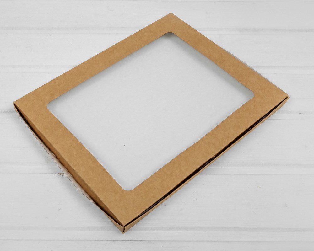 Коробка с окошком 30,1х23,2х1,9 см из мелованного картона, крафт