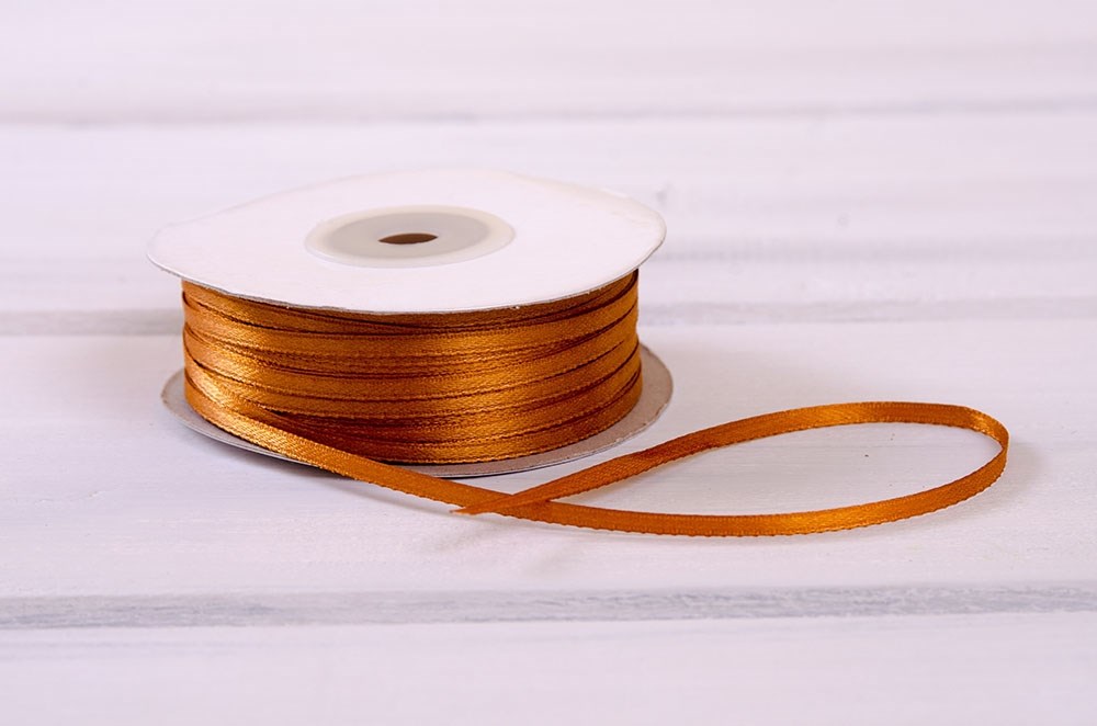 Лента атласная, 3 мм, светло-коричневая, 91 м
