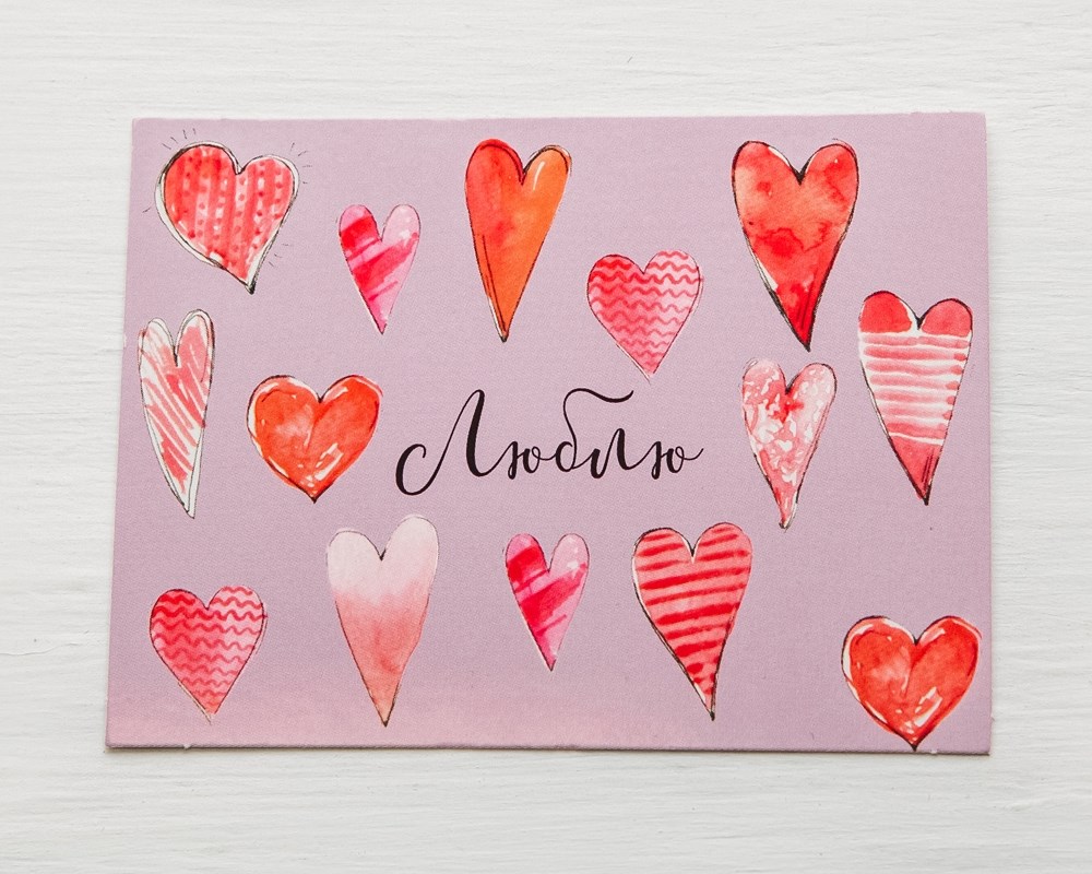 Открытка «Люблю», сердечки, 8х6 см, 1 шт.