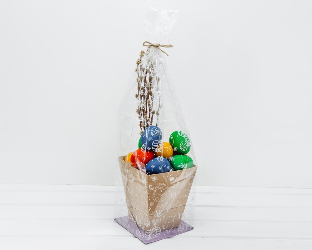 Пакет прозрачный с жестким дном «Пасхальный», 14х14х60 см, дно-сиреневое